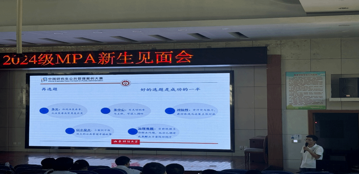 MPA学位的基本情况、课程设置和师资力量,对2024级MPA新生的基本情况做出了简要说明。围绕导师遴选和沟通技巧、论文开题答辩相关要求等同学们目前最关心的问题进行了梳理。抖喵家