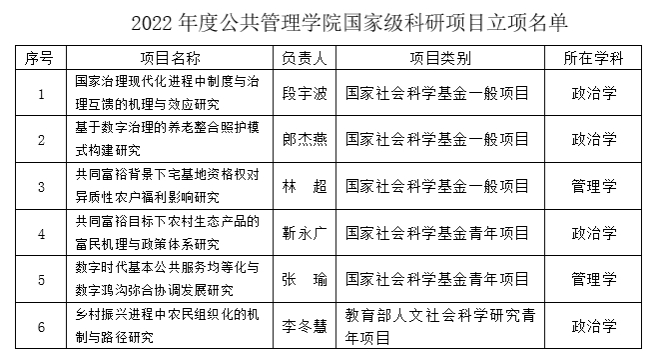 在国家级科研项目立项上取得重要突破,必将有力推动全院科研实力大幅提升,促进公共管理学科建设提档升级。