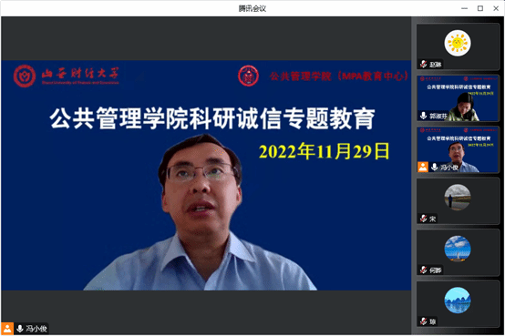 科研失信行为调查处理办法》。领学过程中,重点对文件精神的内涵,特别是对科研诚信建设的具体要求和失信行为的调查处理进行了深入解读,结合国家自然科学基金委近年来曝光的案例进行了警示性教育,要求所有师生要坚守底线,严格自律。
