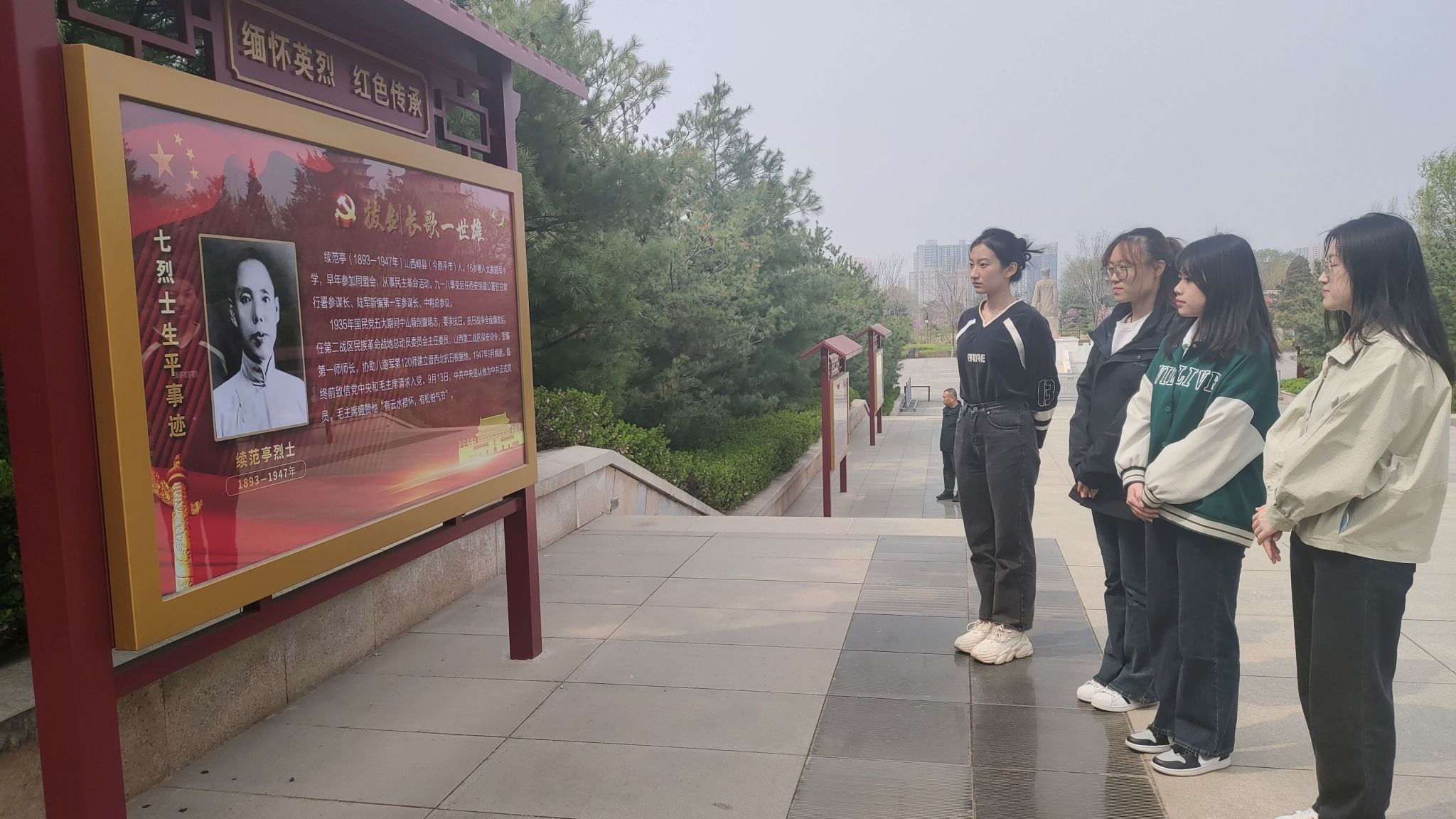 上午九点,祭扫活动在2020级行政管理班潘越琪同学的主持下有序开展。她深情的讲述了为革命烈士的英勇事迹,感人故事,回顾了革命先烈在解放太原战役中作出的伟大牺牲和无私奉献。大家表达了对先人的思时之敬和对英烈的哀思与敬仰,并表示要将追思转化为爱党爱国的行动力。