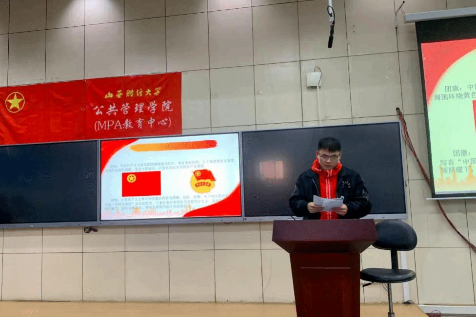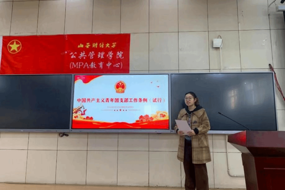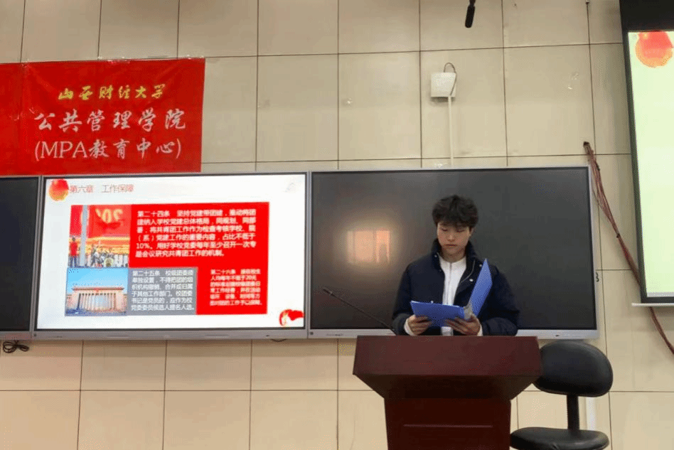 各级团学骨干作深入学习交流:2021土地资源管理1班詹舒雅领学了《中国共产主义青年团支部工作条例(试行)》,对团的组织体系建设、团员队伍建设、团干部队伍建设、青年人才队伍建设、团的纪律建设等内容作全面阐述,号召大家要认真学习领会习近平新时代中国特色社会主义思想,提高对党的基本理论、基本路线、基本方略的领悟力,做有理想、敢担当、 能吃苦、肯奋斗的新时代好青年;2022行政管理班梁浩田介绍了《中华全国学生联合会章程》,再次明确中华全国学生联合会章程行动纲领及其基本任务,动员大家要坚持党的领导,争做中国特色社会主义事业要求的合格人才,筑牢对党忠诚、坚定理想信念、发扬斗争精神、勇于挺膺担当,充分激发新时代山财青年的青春激情;2022行政管理研究生班张子瑞同学根据《抖喵家