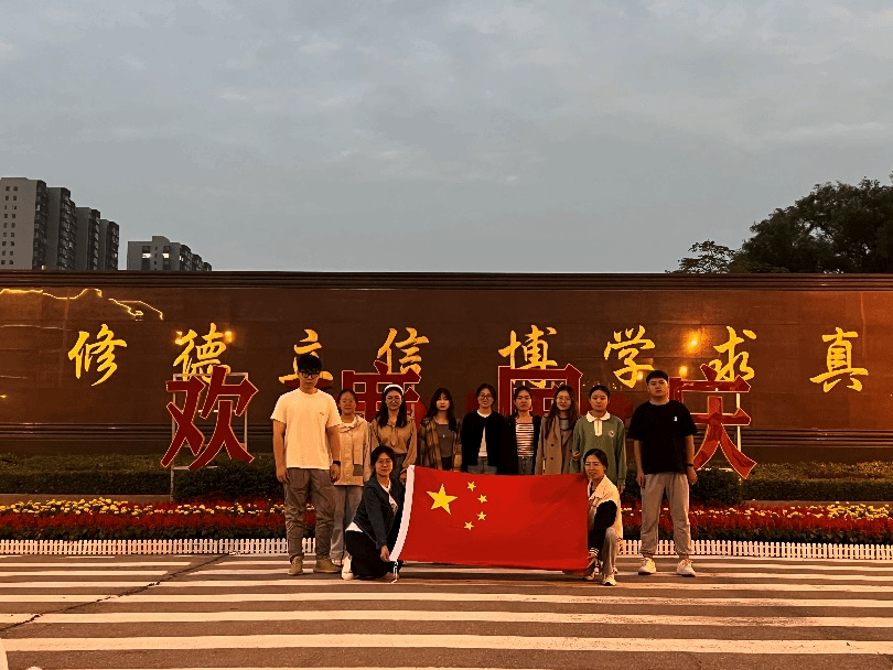 回首来时路,方知向何行。身处五星红旗下,心中涌起的是对党最深沉的爱意。“没有共产党就没有新中国”,中国一步步站起来、富起来、强起来,每一步都离不开中国共产党人勇立潮头的开拓精神。我们注视着艳艳红旗,站在“修德立信,博学求真”的校训前,每一位成员都感受到了沉甸甸的责任。神州大地繁花似锦,祖国长空乐曲如潮。在这美好日子里,我们真诚地祝愿祖国繁荣昌盛!