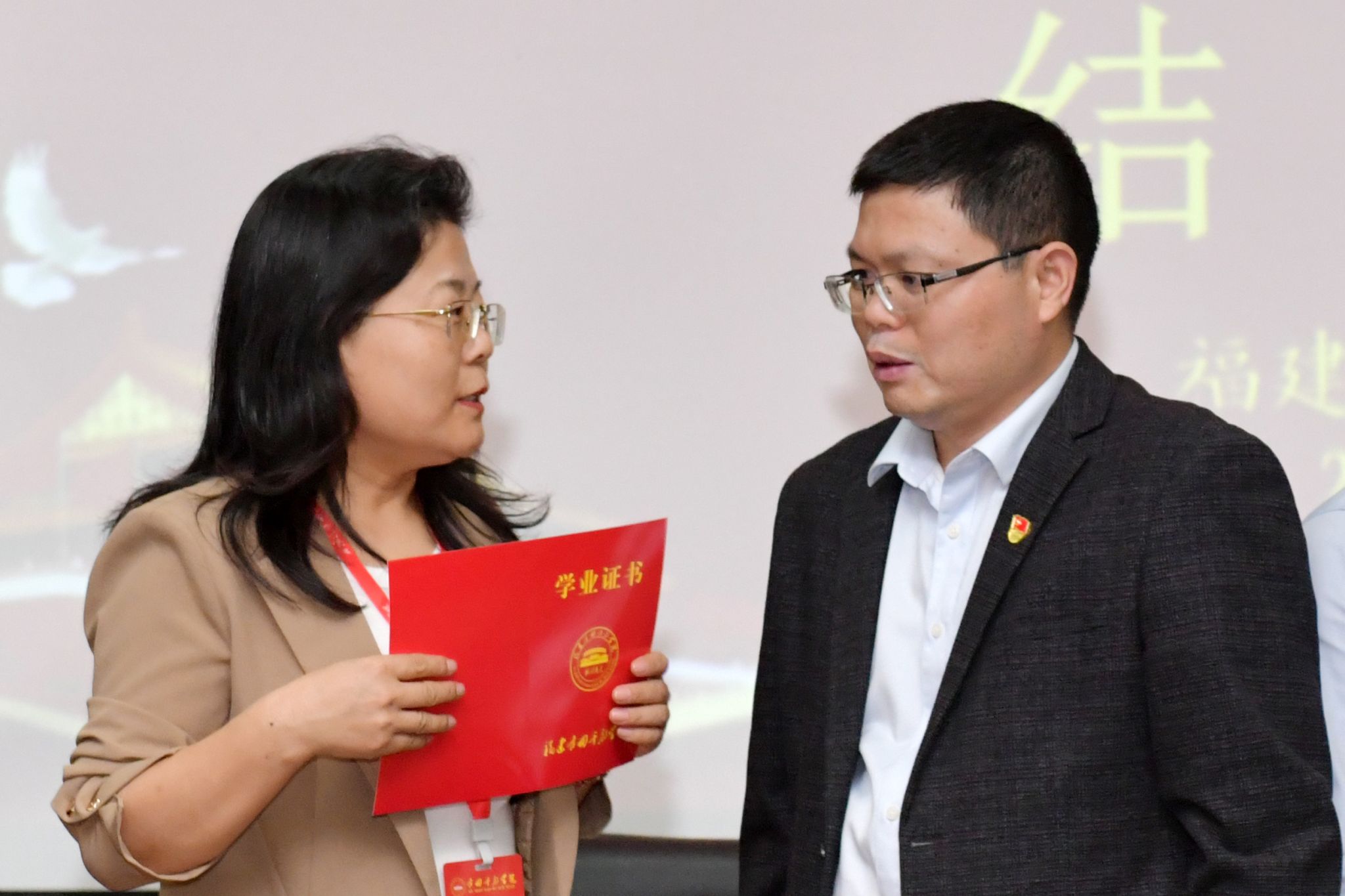 郭淑芬院长和李娟积极参与交流互动,认真聆听了有关部门领导同志关于公务员制度建设的专题报告,学习了《古田会议是党和军队建设史上的里程碑》、《坚定不移全面从严治党 深入推进新时代党的建设新的伟大工程》、《习近平新时代中国特色社会主义思想在福建的孕育与实践》等专题课程。教学之外,还积极参加组织的破冰活动、分组讨论、分组汇报和文体活动友谊赛,加深了对研讨内容的理解。