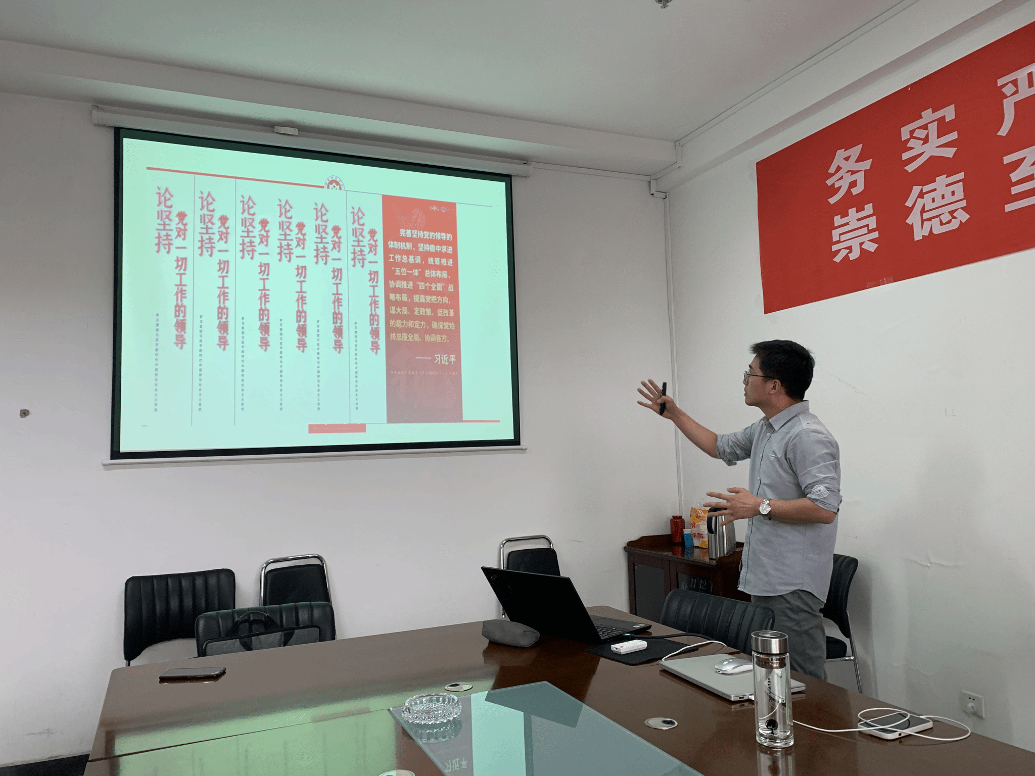 行政管理教研室党支部与“待见·学术工作坊”联合举办了“教师党员讲党课”活动。行政管理教研室党支部靳永广博士以“党的集中统一全面领导如何实现——一个运作机制的考察”为题进行了讲解。郭淑芬院长、刘海燕副院长、行政管教研室党支部党员以及其他感兴趣的老师参加了本次活动。此次活动由行政管理教研室党支部书记刘汉超主持。