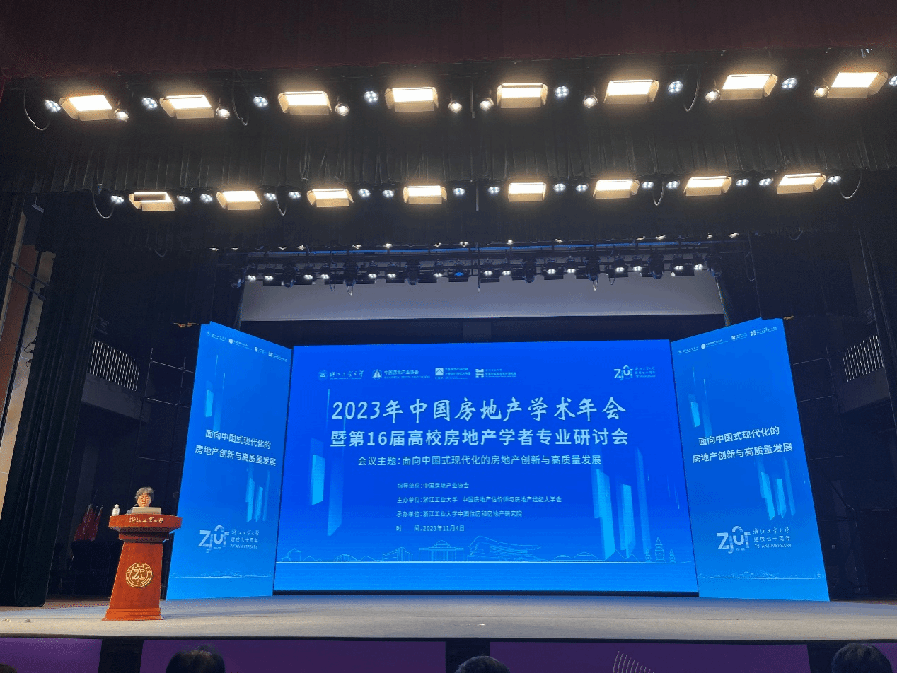 2023年中国房地产学术年会暨第16届高校房地产学者专业研讨会于2023年11月4日在浙江工业大学成功召开。本次会议由浙江工业大学、中国房地产估价师与房地产经纪人学会联合主办,浙江工业大学中国住房和房地产研究院承办,会议主题为“面向中国式现代化的房地产创新与高质量发展”。抖喵家