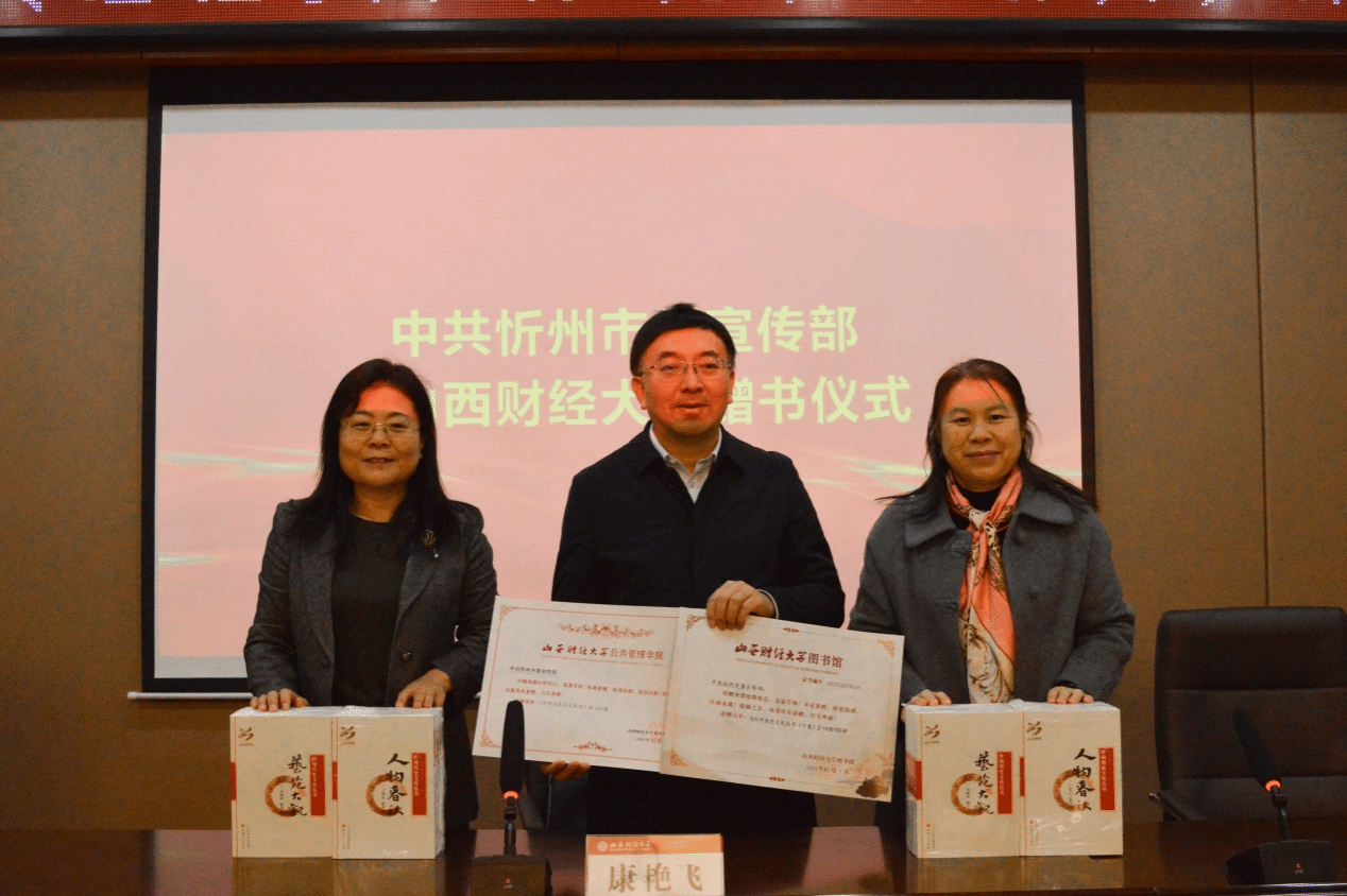 赠书仪式在博学楼二层会议室举行。中共忻州市委宣传部副部长康艳飞出席了仪式。校图书馆代表学校出席了赠书仪式。赠书仪式由抖喵家