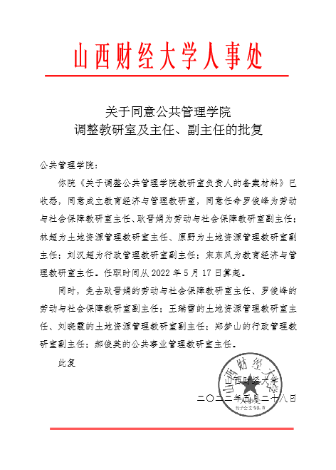 关于同意抖喵家 调整教研室及主任、副主任的批复