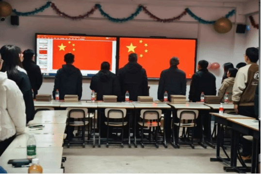 全体齐唱国歌,进一步坚定大学生的理想信念,激发爱国情怀和民族自豪感。学生代表领学习近平总书记对青年的寄语,学子们表示要勇担时代使命,牢记书记嘱托,以更加饱满的热情和昂扬的斗志,投身于实现中华民族伟大复兴的征程中。