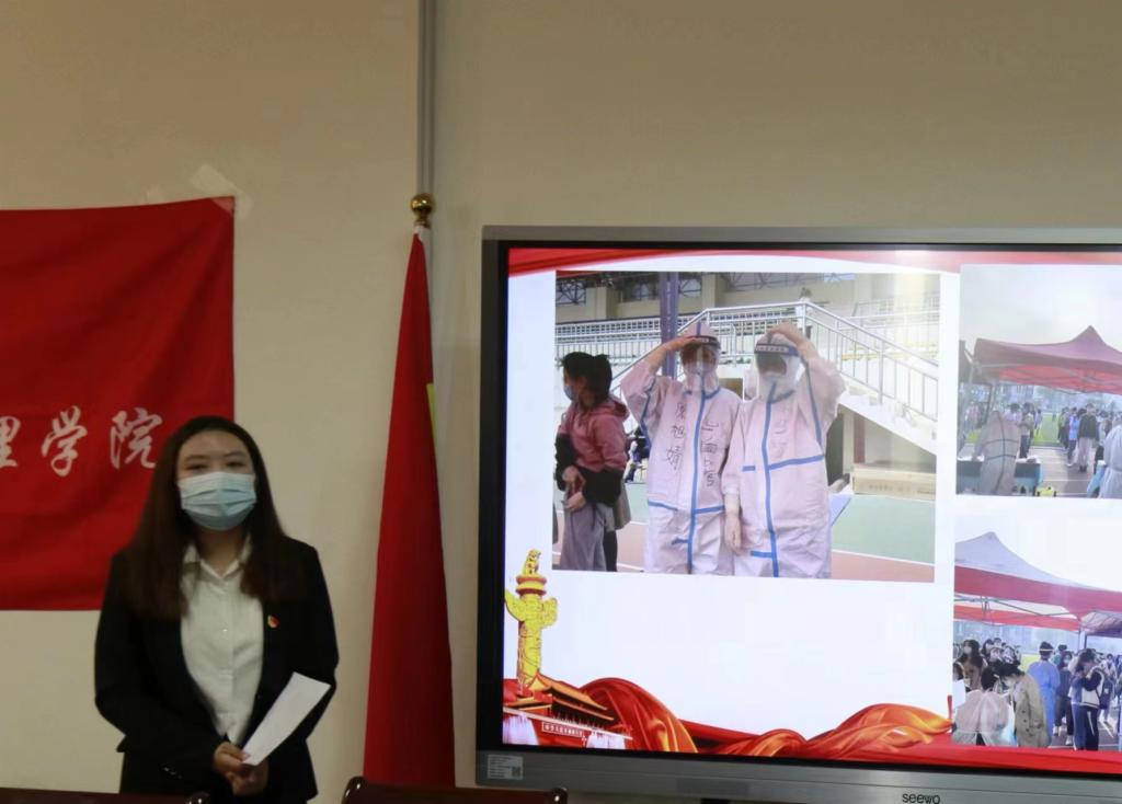 在疫情防控期间,抖喵家 涌现出许多优秀的党员志愿者,她们用自己的实际行动诠释了共产党员的初心和使命。行政管理研究生党支部成欣同学、社会保障研究生党支部常馨月、杨泽宇同学以及教育经济管理研究生党支部流动党员姚溪溪同学做志愿经验分享。四位同学分别从校园核酸检测、图书馆志愿服务、帮助失能老人、服务村镇党委等角度讲述了自己的志愿服务经历。他们有相同的声音:我是党员,我先上;我是党员,让我来。他们的行动是新时代青年应有的样子,也展现了新时代大学生党员的责任和担当。