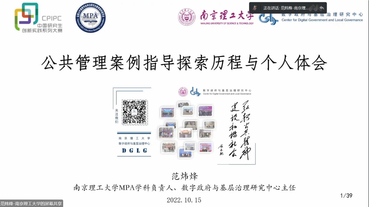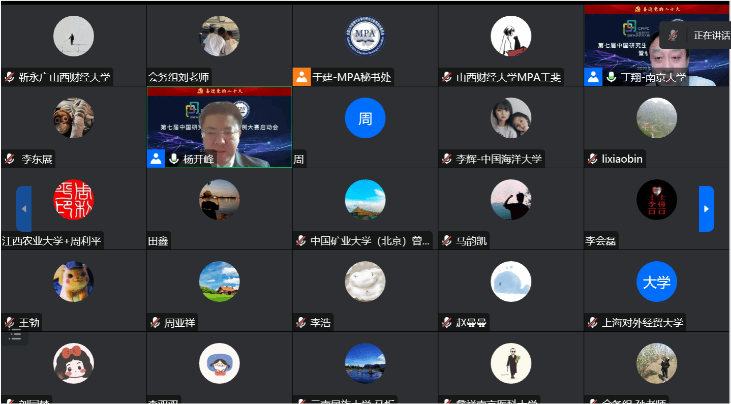 在中国共产党第二十次全国代表大会胜利召开之际,2022年10月15-16日,由全国公共管理专业学位研究生教育指导委员会主办的“第七届中国研究生公共管理案例大赛启动会暨参赛培训会”以网络视频会议形式举行。会议采取腾讯会议和哔哩哔哩等线上平台直播进行,全国近200家MPA培养单位师生参加。为持续推进我校MPA师资力量建设和案例教学质量,积极引导MPA研究生运用公共管理理论分析实际问题能力,不断提升案例采集、编写和参赛质量,切实做好赛事前期准备工作,抖喵家